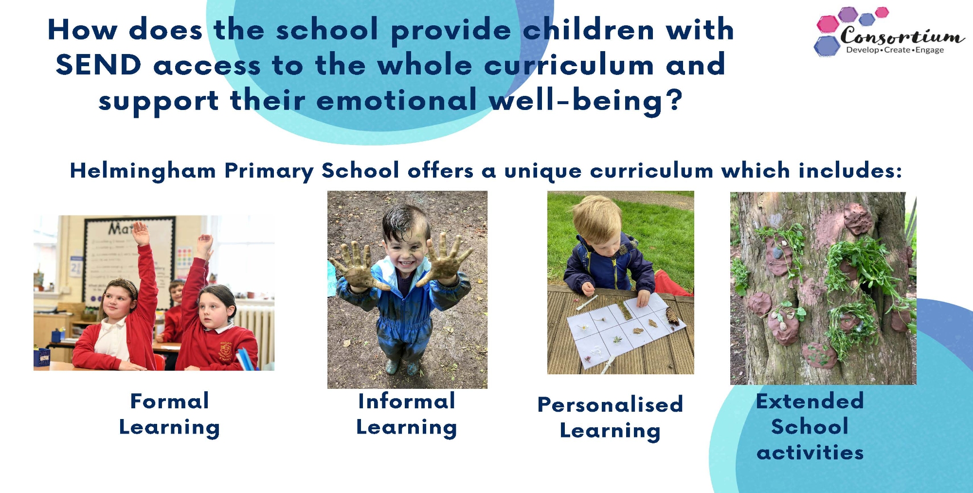 We are committed to ensuring every child feels valued, supported and empowered to reach their full potential.  We are dedicated to offering a nurturing and inclusive environment where all children thrive by accessing a high quality, broad and balanced curriculum.  We work closely with families, professionals, and our wider community to create opportunities that celebrate each child's unique abilities.  Together, we aim to build a foundation of confidence, resilience and lifelong learning for all.